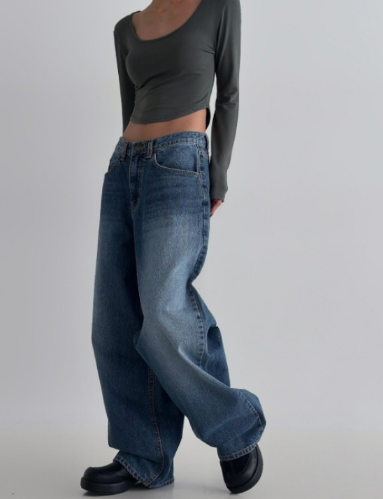 885번 로우 와이드 일자 데님