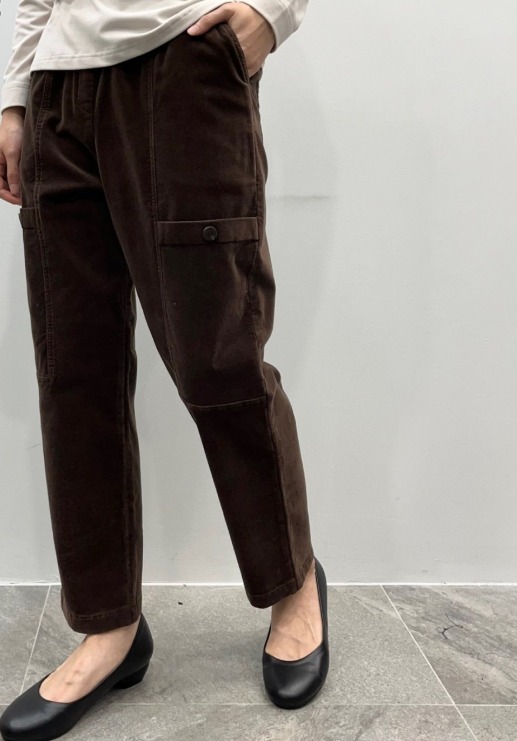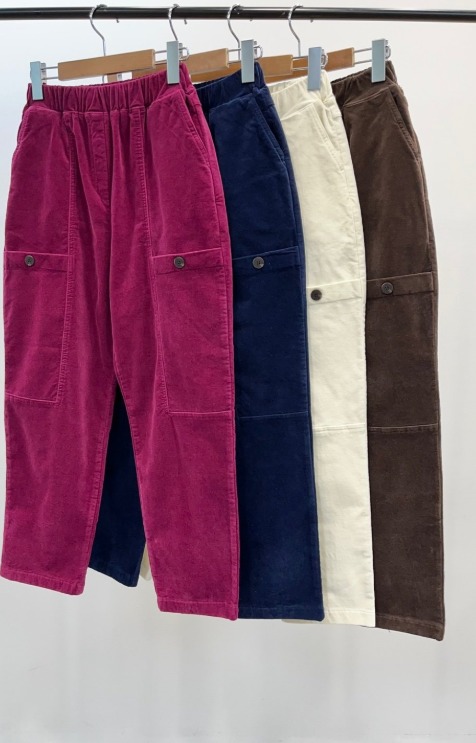 알파카 벨벳 단추 배기 밴딩 팬츠