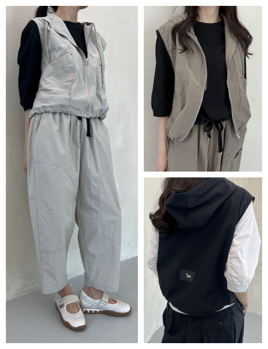 썸머 반달 후드 조끼