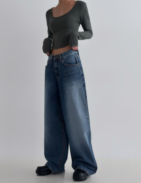885번 로우 와이드 일자 데님